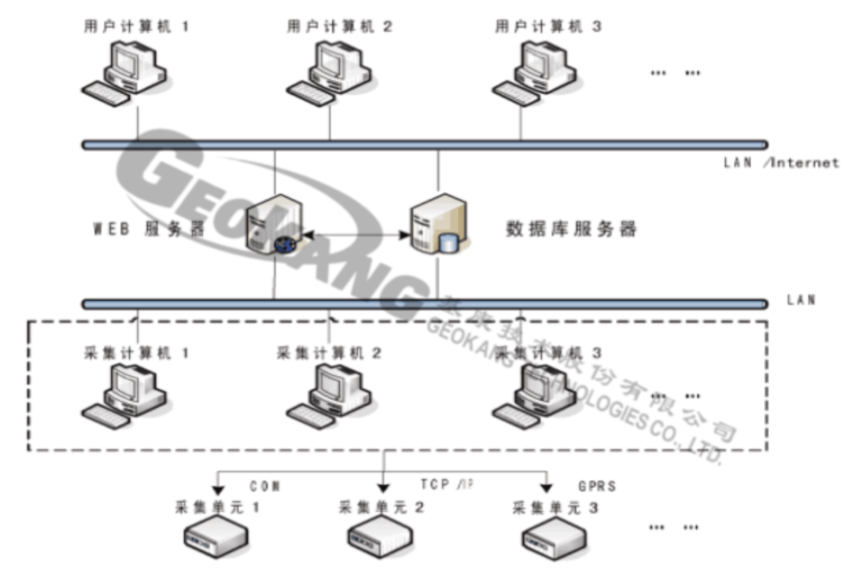 BGKLogger.Net信息管理網(wǎng)絡(luò)系統(tǒng)由信息管理系統(tǒng)和信息發(fā)布系統(tǒng)組成。其中信息管理系統(tǒng)采用C/S(客戶機(jī)/服務(wù)器) 結(jié)構(gòu)設(shè)計(jì),集數(shù)據(jù)采集、遠(yuǎn)程控制、監(jiān)測(cè)信息及數(shù)據(jù)管理、數(shù)據(jù)圖形分析于一體;信息發(fā)布系統(tǒng)采用B/S(瀏覽器/服務(wù)器)結(jié)構(gòu)設(shè)計(jì),將監(jiān)測(cè)信息及數(shù)據(jù)發(fā)布,用于Internet瀏覽查詢。