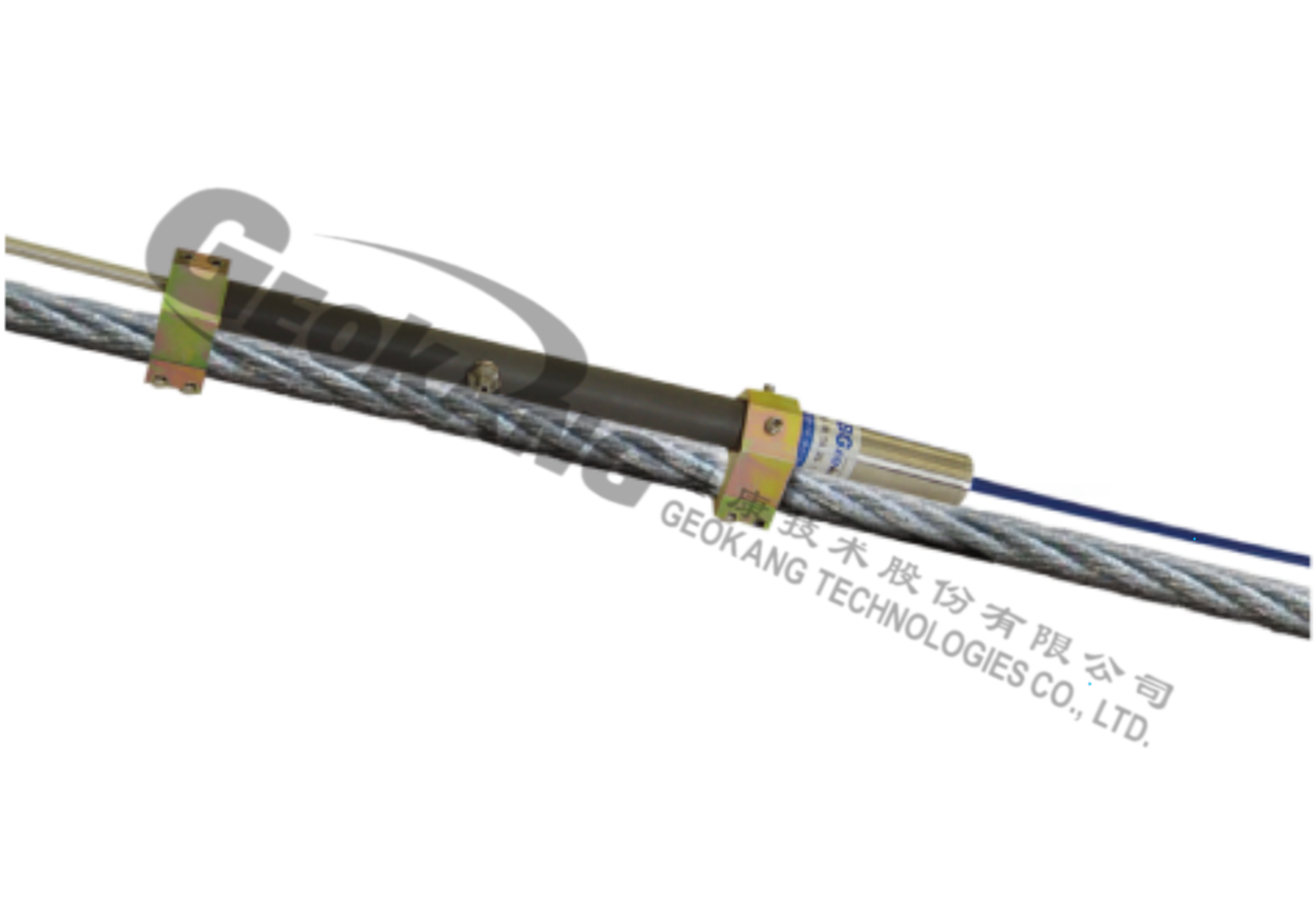 BGK4410振弦式鋼索計用于監(jiān)測鋼索的應變,兩端的鎖緊塊(夾具)將其緊緊地固定在鋼索上,通過測量鋼索的形變及已知的鋼索彈模來確定鋼索的受力變化情況??筛鶕脩粢筇峁└鞣N直徑的鎖緊塊。